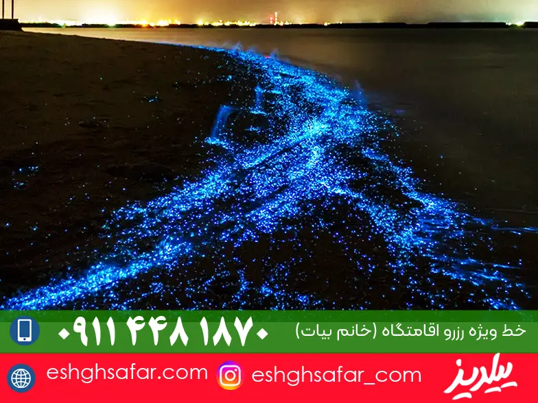 ساعات طلایی بازدید از ساحلاگر به قصد تماشای درخشش نقطههای آبی رنگ به ساحل میروید بهتر است ساعت مناسبی را برای بازدید خود انتخاب نمایید. اثر فعالیتهای پلانکتونی در ساحل تنها در هنگام شب قابل مشاهده است. بهترین زمان قدم گذاشتن به ساحل شب تاب چابهار برای تماشای این پدیدهی جذاب ساعات تاریک شب هستند. حدود دو ساعت پس از تاریکی هوا امکان مشاهدهی درخشش برجای مانده از آبزیان به حد مطلوبی میرسد. پیدا کردن تاریکترین نقاط ساحل و قرار گرفتن در آن مکانها در زمان مناسب یکی از ماندگارترین صحنههای عمر هر فرد را رقم خواهد زد.