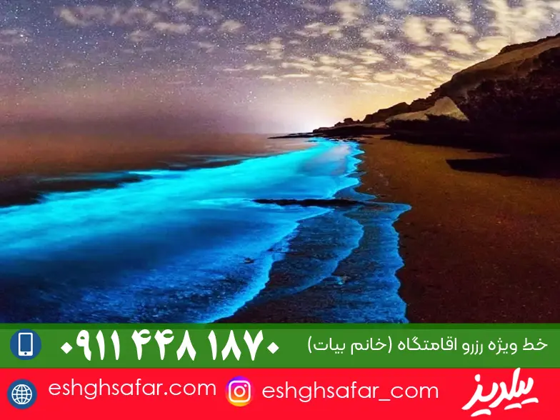 البته چنین پدیدهای در ۲ ساحل دیگر با نامها مالدیو و کالیفرنیا نیز رخ میدهد. دلیل علمی این پدیده وجود فیتوپلانکتونهای دریایی است که در هنگام شب از خود نور ساطع میکنند. این مکان نیز یکی از بهترین جاهای دیدنی کیش است.
